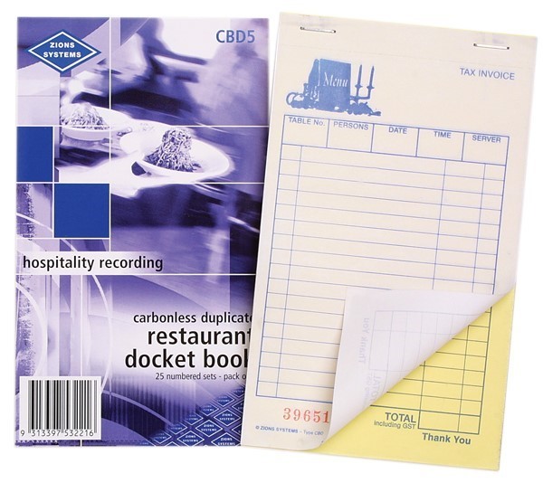 Zions CBD5 Carbonless Restaurant Docket Duplicate Pack 5