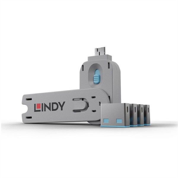 About Lindy USBA Port Block/Key x4 B The USB Port Blocker is made up of a combined 'key' and 'lock' assembly which plugs into the USB port and physically blocks access to it