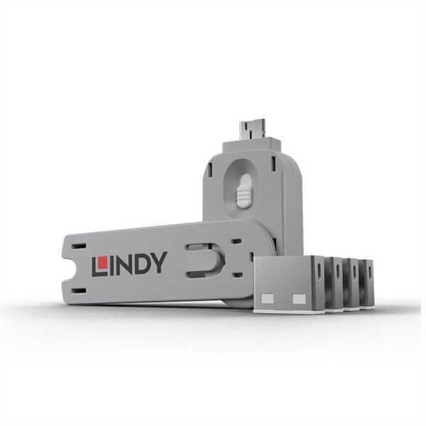 About Lindy USBA Port Block/Key x4 W The USB Port Blocker is made up of a combined 'key' and 'lock' assembly which plugs into the USB port and physically blocks access to it