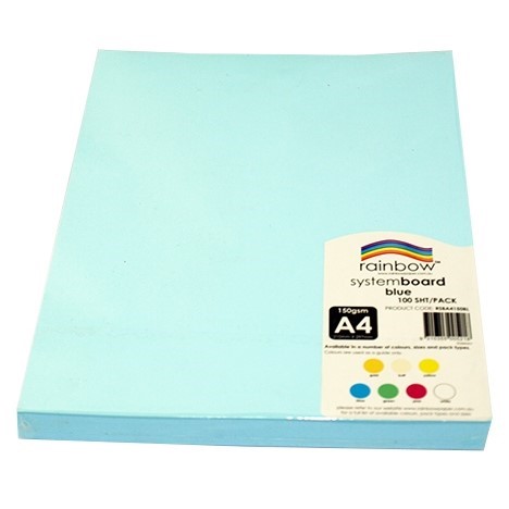RAINBOW SYSTEM BOARD 150GSM A4 100 SHEETS BLUE